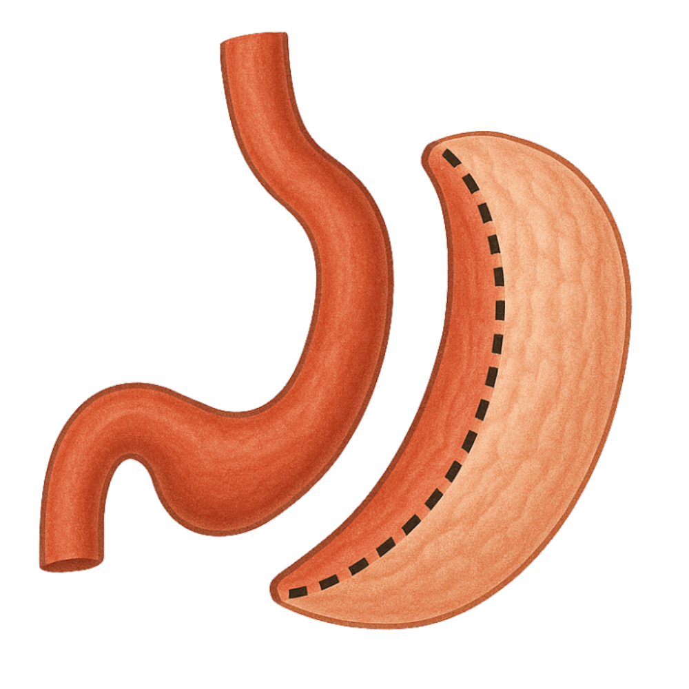Durante la cirugía, se extrae aproximadamente el 80% del estómago, dejando una parte con forma de tubo o “manga”.